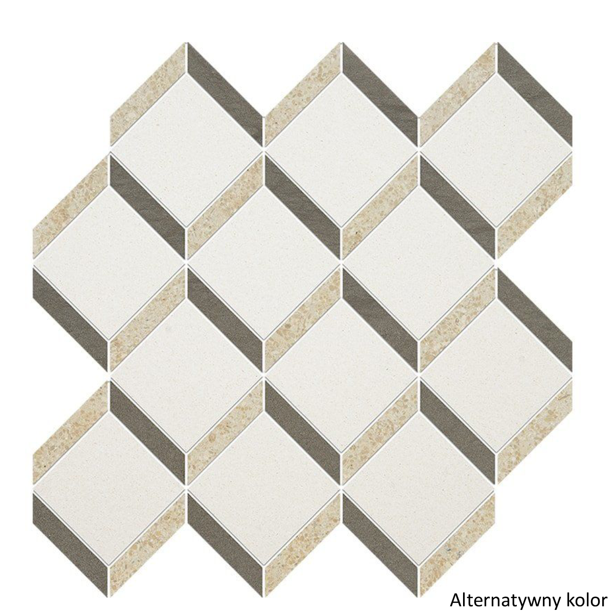 Cream — jaśniejsza, bardziej mleczna odmiana, wprowadzająca do wzoru lekkość i blask. W połączeniu z ciepłym beżem tworzy efekt naturalnego gradienta, który sprawia, że mozaika wydaje się świecić od środka.