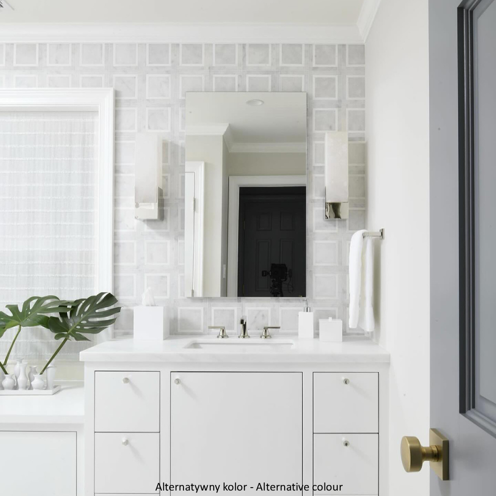 Mozaika Greenwich wyróżnia się subtelnym kontrastem pomiędzy wypełnieniem a ramką. Cienkie obramowania nadają kompozycji głębi i tworzą efekt przestrzenności, który pięknie współgra ze światłem.